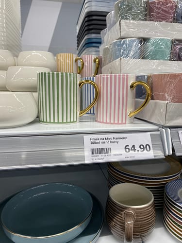Moc se mi líbily tyhle hrníčky, jsou takové typické jarní. Zakoupíte je v modré, růžové, zelené a žluté barvě. Zlaté ouško je jen výborným detailem k celému designu. A ta cena?!