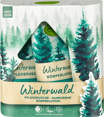 Máte rádi přírodní kosmetiku? Tak to jste u značky Alverde na správném místě. V setu najdete sprchový gel s rostlinným glycerinem, krém na ruce s bio bambuckým máslem a bio sójovým olejem a tělové mléko. Navíc to balení? NÁDHERA.