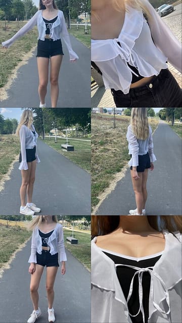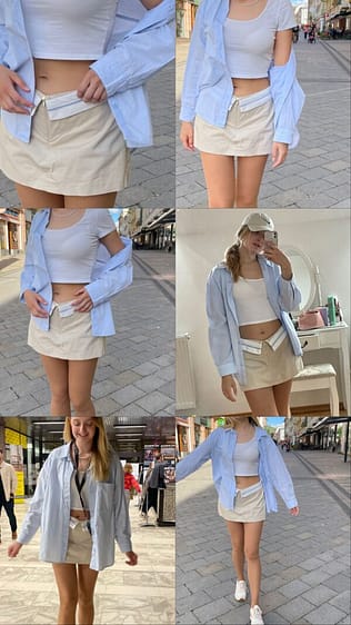 Tuhle frázi vídám denně na reels a prostě mi k tomu jde. V překladu to znamená „cítí se hezká“, což na poslední fotce můžete vidět, haha. Hitem letošního léta jsou podlouhlé riflové kraťasy, které jsou zde v kombinaci s bílou, která jde prostě ke všemu.